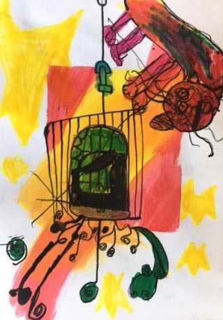 - Ceruzával rajzold fel a kalitkát, benne a madarat is. Húzd át a vonalakat alkoholos filccel.
