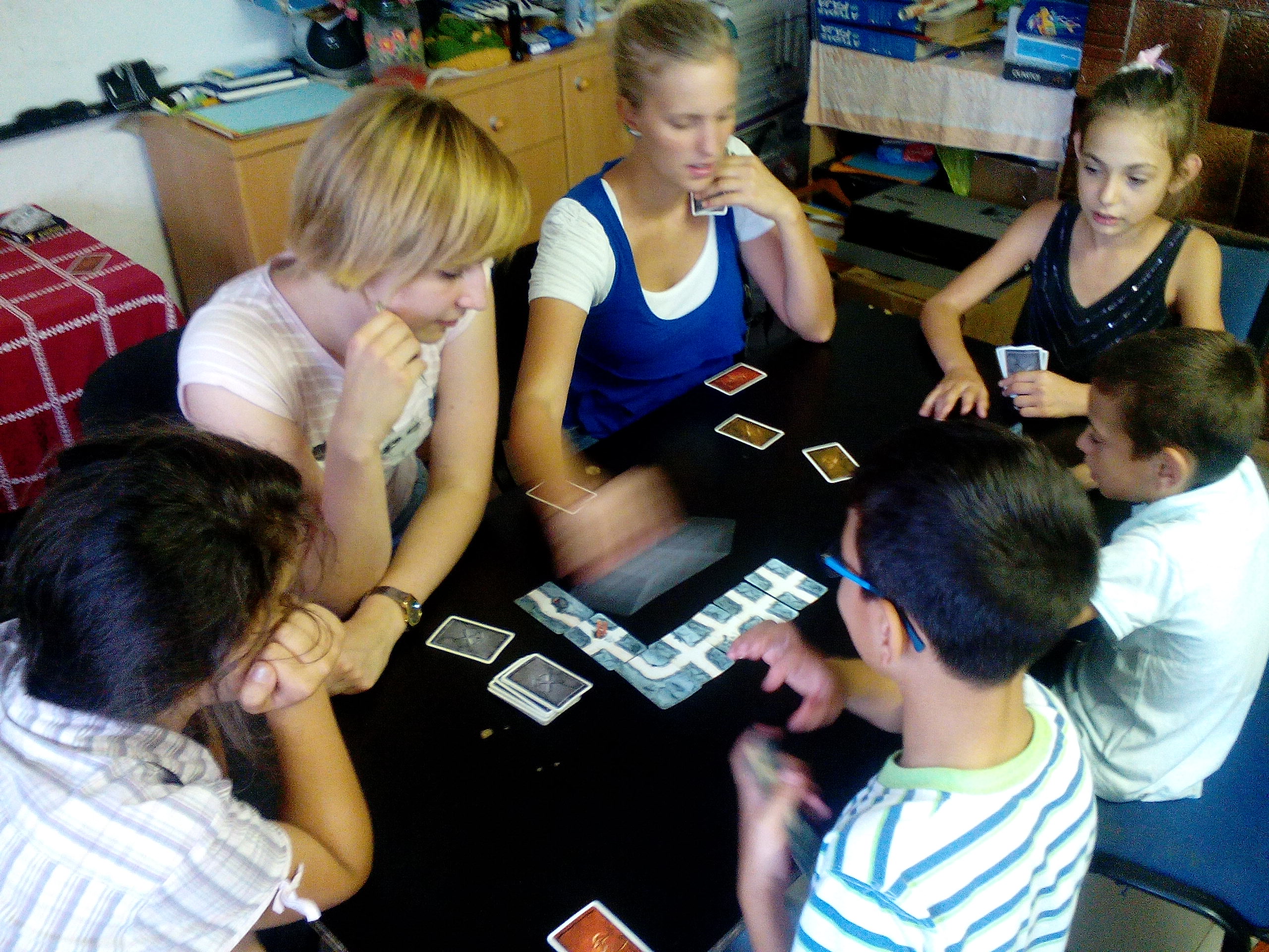 De sokkal több volt az igen, a pontosan érkezett gyerek. Egyre jobban belerázódunk a tanodai hétköznapokba, szokjuk az új a formákat. A 8-11 éves korosztálynál is elkezdtünk nagyobb hangsúlyt fektetni a társasjátékra, amit nagyon élveznek. Kicsit több időt kaptak a tanodában, és a foglalkozásaikat is feszesebbre tudjuk tervezni, ami köszönhető az ő és a mi rutinunknak egyaránt. Az eddig megszokott, kétszemélyes, többnyire absztrakt játékok is megmaradtak, a foglalkozásokat jellemzően ilyenekkel keretezzük, de zárásként egy 20-30 perces társasjáték közös rituáléját igyekszünk meggyökereztetni. Az elmúlt két hétben a nyáron megkedvelt Hick Hack-kel vezettük be mindezt sikeresen, a héten pedig új játékot tanultunk. Az Aranyásók két éve már sikerrel debütált Toldon, az azóta profivá váló srácokkal sokat gyűrtük, így számítottunk rá, hogy jó választás lesz, bár bizonyos okokból kockázatos: személyeskedéssé fajulhat egymás letiltása, illetve kiszorulhat a játékból valaki, ha nem tud megszabadulni a tiltó laptól. Ezeket részben a pedagógus, részben a kiegészítő, az Aranyásók 2 bevezetése tompíthatja. Úgy láttuk, hogy mindkét csoport megkedvelte a játékot, fogjuk tudni használni. Elsősorban a türelem, a koncentráció, a játékkultúra fejlesztése a célunk, amiket egyelőre elég problémásnak diagnosztizálhatunk. Ha ezeken a területeken pozitív elmozdulások lesznek, akkor egyéb kompetenciák is előkerülhetnek, hiszen komplexebb játékokkal csak magabiztosabb, sikeresebb játékosokat érdemes terhelni. Egyelőre lassúak a döntések, pontatlanok a szabályelsajátítások, hiányzik a folyamatos figyelem, így csak elszórva jelennek meg taktikai elemek, stratégiáról pedig még nem beszélhetünk. Év végére komoly változásokra számítunk, és az eddiginél pontosabban szeretnénk mindezt nyomon követni, így a tanulási naplónk újragondolásánál a játék is helyet kapott. Pontosabban fogjuk látni a folyamatokat, teljesebb képpel, tudatosabban tervezhetünk.
