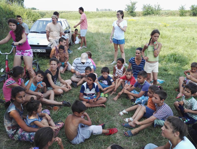 A drámás foglalkozások kicsit veszítettek a súlyukból az eddigiekhez képest. A mai napon is inkább hirtelen ötletként kezdtünk el a gyerekekkel egy könnyebb, utánzáson, mutogatáson alapuló játékot, ami nem várt sikert aratott a kultúr udvarán csellengők körében. A délelőttre már ismert játékokkal készültünk. Ezeket a vicces mozgásokra és jellegzetes ritmusra épülő körjátékokat (Helló, Béla vagyok, Wattancsu, Helikopterbevetés, Megyünk fát vágni) a drámapedagógiában leginkább csak a feszültség oldására használják a foglalkozások bevezetésekor, de a gyerekek többször kérik tőlünk, a szövegeket is jól ismerik, ezért bármikor könnyen rávehetőek, sőt általában végül mi tagadjuk meg a sokadik megismétlést. A mai foglalkozás igazán jó hangulatúra sikerült, ezért újult erővel állunk neki a holnapi alkalom megtervezésének.