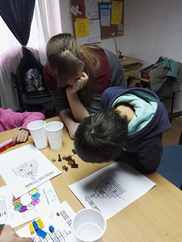 Mivel szeretnénk felkelteni minden gyerek érdeklődését az idegen nyelvek iránt, máris egy új projektbe kezdtünk, amire valójában egy 5 perces kódfejtésként is tekinthetünk. Minden tanulás elejére tervezünk rövid, apró feladatokat. Mivel szeretnénk már az elsős korosztályt is elérni az eheti megfejtendő kód színekből áll. A tanulások előtt minden gyereknek adunk egy fekete-fehér ábrát, amibe csak a színeket írjuk be az adott idegen nyelven (angol/német). Az ábra alapján pedig különböző legóházakat kell készíteniük. Egyelőre még nem tudjuk, hogy pontosan merre fog haladni ez a projekt, először szeretnénk az eheti tanulságokat átbeszélni, és azokra alapozva tervezni tovább, de fontos, hogy hétről-hétre legalább minimálisan találkozzanak idegen nyelvű feladatokkal, ami meghozza a kedvüket akár a nehezebb dolgokhoz is.