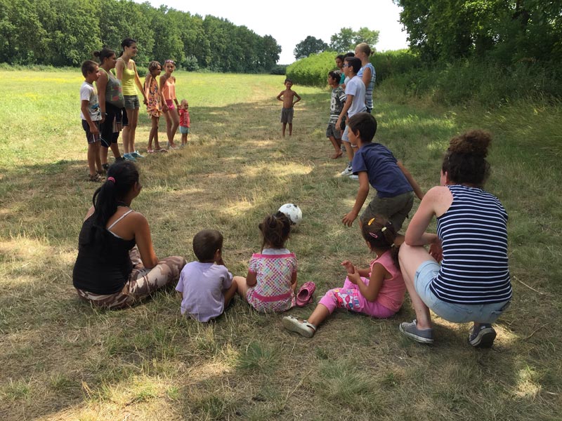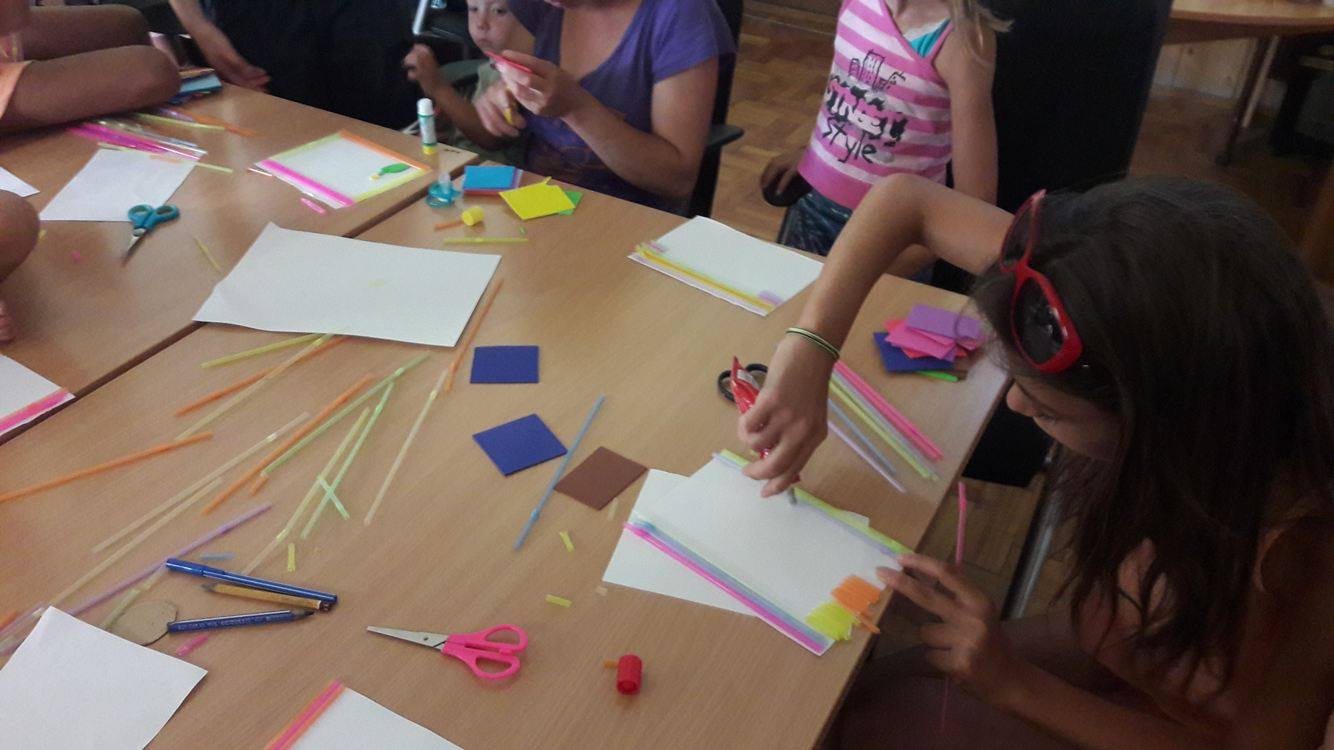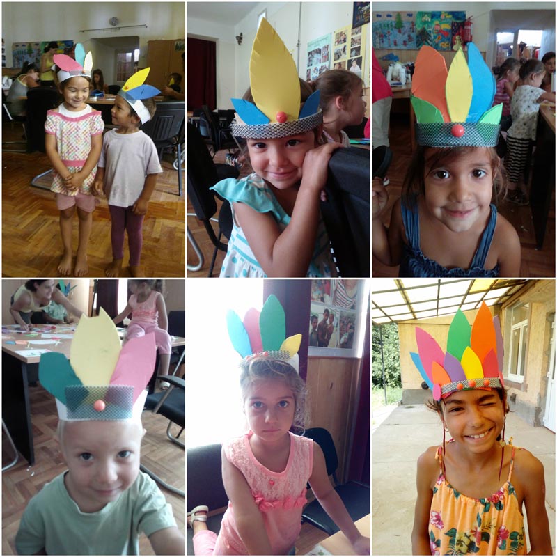 Reggel ismét körbejártuk a falut és összegyűjtöttük a gyerekeket. Sokan eljöttek, ezért két csapatra osztottuk őket. Az egyik csoportban a kisebbekre készültünk, a merész vállalkozók ügyességi játékokban mérethették meg magukat hol a fejükön labdát egyensúlyozva, hol pedig labdával a bójákat kerülgetve. A nagyobbakkal különböző fogócskákat és királylabdát játszottunk. Ezután két kézműves foglalkozás vette kezdetét. Egy asztalnál igazi indiánok születtek tollas fejdísszel, gyöngyökkel, sőt volt aki a tökéletes hatás érdekében az indiánkiáltást is gyakorolta. Párhuzamosan szívószálból képkeretet és dekorgumiból képeket készítettünk. Habár nem volt könnyű, a legkisebbek is türelmesen dolgoztak és mindenki nagyon élvezte ezt a kreatív részét is a délelőttnek. Aki pedig egyikben sem lelte kedvét még mindig kereshetett egy társast meg egy szabad önkéntest és végigjátszhatta a délelőttöt.