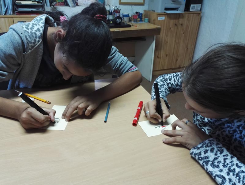 A cél most is – mint sok más idegennyelvi projektünk esetén – a szókincsbővítés volt. Két alkalom természetesen nem elég ahhoz, hogy ezek a szavak a gyerekek aktív szókincsének részei legyenek, de a legközelebbi találkozáskor néhány már ismerősebben fog hangzani számukra. Ráadásul nem csak szaktárgyi hozadékai vannak az ilyen kiscsoportos alkalmaknak. Az új tanévben más beosztásban járnak hozzánk a gyerekek, együtt jönnek olyanok is, akik eddig még nem tanodáztak együtt. Az, ahogy a gyerekek próbálgatják ezeket az új viszonyokat, mindig izgalmas, ehhez is jó terep volt most ez a közös projekt. A szókártyák rajzolása közbeni üresjárat például jó ürügyet szolgáltatott egy tanulás előtti traccspartihoz. De a szótanulással kapcsolatban is voltak jó élményeink. Van két barátnő, akiket idén először ugyanarra az időpontra tettünk. Ők most együtt tanulták meg a szavakat, nem is akárhogy! A tanulás után mindegyiket hibátlanul visszamondták névelőkkel együtt. Épp ez a páros tanulás volt az egyik ok, amiért szerettük volna, hogy együtt jöjjenek. Most az első után úgy tűnik, működhet náluk ez a forma is, úgyhogy biztosan fogunk még próbálkozni vele.