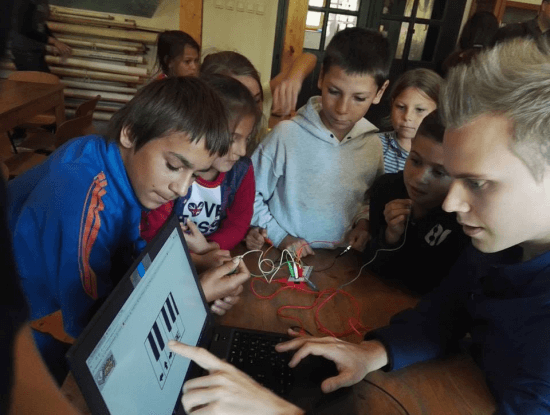 Az állatkerti séta után a programozás következett. A gyerekek hármasával kaptak egy laptopot, és az oktató instrukcióit követve megismerkedhettek a Scratch programozás alapjaival. Első feladatként különböző parancsok megadásával egy papagájt kellett reptetniük a képernyőn. A következő feladat már összetettebb volt: egy játékot programoztak, amelyben a macska kiszabadította a sárkányt a labirintus fogságából.