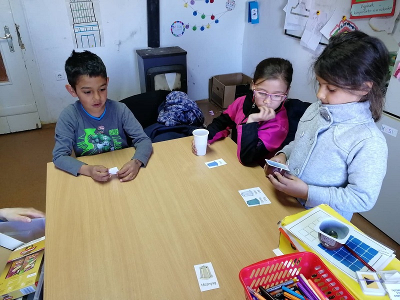 Az elmúlt három hétben és még a következő egy hétben minden tanulás előtt tulajdonképpen felkészítő alkalmakat tartunk. Eddig már megismerkedtünk videókon keresztül olyan dolgokkal, amelyek szennyezik a környezetünket, illetve olyanokkal, amelyekkel óvni tudjuk azt. Vizsgáltunk és értelmeztünk különböző jelöléseket: hogyan jelölik, ha egy termék újrahasznosítható, nem háztartási hulladék, nem volt állatokon tesztelve vagy tűzveszélyes. Válogattunk szemetet fém, műanyag, papír és üveg alapanyag szerint. Kerestünk a tanodában olyan dolgokat, amiket valamiből mi már korábban újrahasznosítottunk. Ennek kapcsán sokat beszélgettünk az újrahasznosítás értelméről.