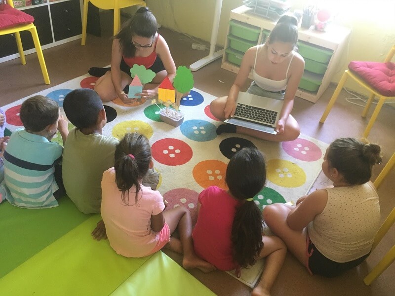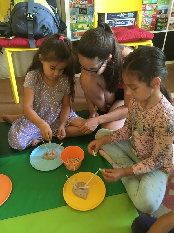 Egy éve már biztosan érezzük (de talán több is), sőt már itt is beszéltünk róla többször, hogy egyre több óvodás korú gyerek is kezd járni a táborainkba, akiknek nem igazán megfelelő az a szokásos program menet, amely évek óta működik a nagyobbaknál. Nem bírták az időt, nem volt elég nekik szóló játék, elfoglaltság, nagy volt a tér, könnyen kizökkentek egy-egy elfoglaltságból. Voltak ugyan alkalomszerűen nekik szóló foglalkozások, de nem minden nap. Próbálkoztunk, próbálkoztunk, de most tűnik úgy, hogy végre tudtunk találni egy jó formát a kisebb korosztálynak is. Tavaly nyáron kezdődött. Még eleinte egy kicsis sarokkal próbálkoztunk csak: gyurma, legó, bábok, építőkockák mind egy helyen, kicsit elzárva asztalokkal a nagyobb tértől, kényelmes szőnyeg és polifoam. Ez nem volt elég, így tavasszal és első nyáron párhuzamosan a tanodában mindenféle játékkal játszhattak a kicsik szabadon, minimális felnőtt irányítással. Lett ehhez homokozónk, kartonházunk és még sok-sok régi játék. Eleinte imádták ezt a gyerekek, de rájöttük, hogy nekik is és nekünk is kell egy kis struktúra, úgyhogy részben tervezett, részbe szabadjátékos foglalkozásokkal készültünk a második táborba, mely teljesen jól működött minden esetben. Ehhez kicsit szigorúnak, nagyon kreatívnak és sok emberből álló csapatnak kellett megalakulnia. A kreativitással eddig sem volt gond, a szigorúság inkább csak következetességet jelent (kultúrban a nagyok vannak, tanodában a kicsik és a konfliktusok elkerülése érdekében nem teszünk kivételeket sosem) és igen, a csapatlétszám elengedhetetlen: legyen elég ember társasozni, kézműveskedni a kultúrban, de olyan is, aki az állandóan pörgő kicsikkel foglalkozik, hazaviszi őket és elhozza, reagál a hirtelen felmerülő igényekre. Szóval volt öt szuper foglalkozásunk és most ezekből szeretnénk egy kis ízelítőt bemutatni.