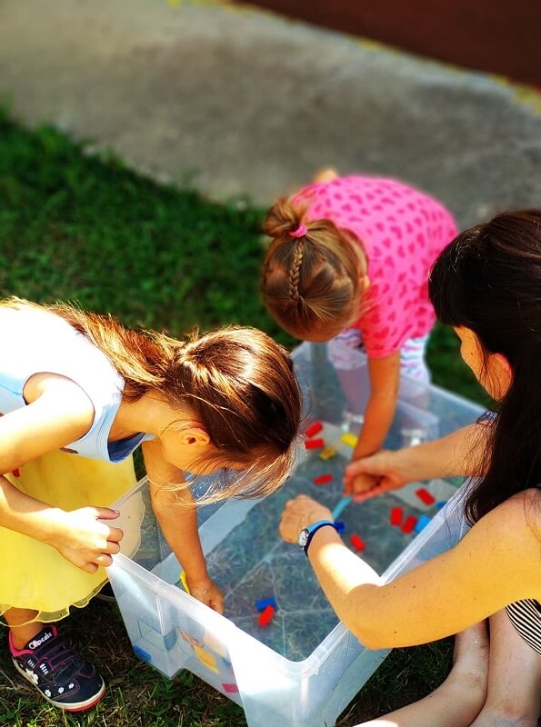 Meleg volt egész héten, jól jön ilyenkor az árnyék és persze a pancsolás is. Egyik ovis alkalommal beiktattunk  hát egy vizes napot. Vizsgáltunk jégbe zárt világokat, beszélgettünk a jégről, megfigyeltük hogyan olvad el és mik bújnak elő belőle. Ismerkedtünk állatokkal, csoportosítottuk a szerint, hogy melyik állat él a vízben és melyik a szárazföldön. Volt egy mini sorverseny is vízhordással és legóhalászattal, végül pedig vízipisztolyos célba lövést és egy vízfalat próbáltunk ki a gyerekekkel.