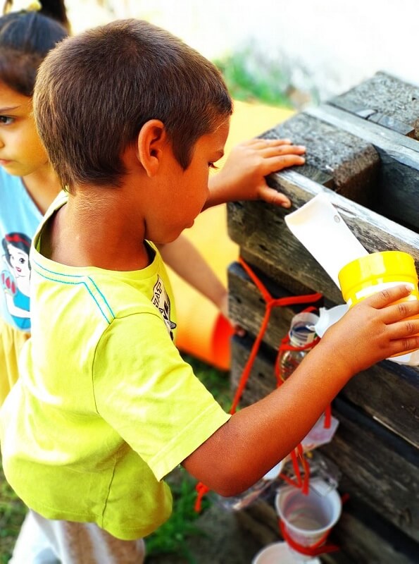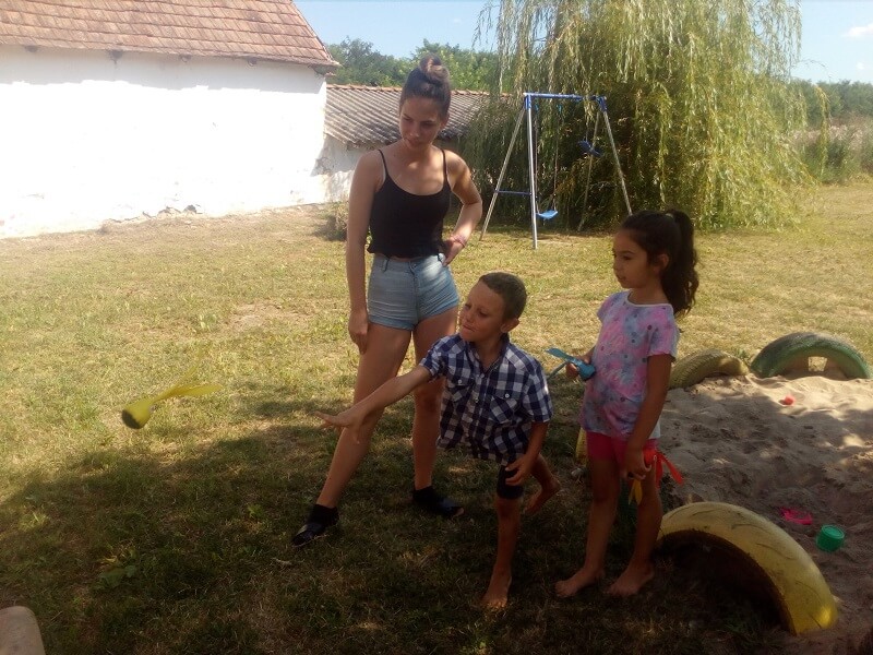 Próbálgatós alkalom volt, talán túlságosan is, hiszen kiderült, hogy egy-két lécet kissé magasra tettünk, de azért sokat tanultunk belőle és összességében a gyerekek egészen jól érezték magukat. Kezdetnek létszámtól függően egyénileg vagy párban kellett buborékokat vadászni. Az újdonság az volt, hogy számolásra kértük őket – inkább kevesebb sikerrel -, illetve nem léphettek ki egy körből. Utóbbi azért egy-két igazán vicces mozdulattal emelte az alkalom fényét. Ezután a gyerekek fecniken poharak és kanalak képét húzva eszközökhöz jutottak és ezek alapján folyamatosan párokat alakítva az volt a feladatuk, hogy a lehető leggyorsabban megtöltsék a poharakat homokkal. Kiderült, hogy a képeket sokan nehezen értelmezték és fordították át, a páralakítás pedig szinte senkinek sem jött össze segítség nélkül, szóval itt azért van még fejlődési lehetőség. Zárásként egy igazi klasszikust vettünk elő és bújócskáztunk a srácokkal. Eddig nem igazán játszottunk ilyesmiket velük – sok oka van ennek -, de mostantól két érvünk is lett amellett, hogy gyakrabban kerüljön elő. Egyrészt nagyon élvezték, másrészt nagyon ügyetlenek voltak benne. 5-6 kör alatt is csak 2-3 búvóhelyet használtak, teljesen hiányzott a kreativitás a csapatból, a hunyó szerepe azonban még ennél is keményebb falat volt: többnyire tanácstalanul lődörögtek. Hiába, ebben is gyakorlatot kell szerezni.