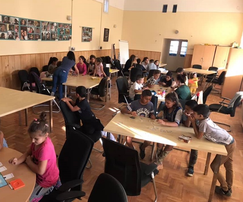 Persze a társasjátékozás sem maradt el a táborból, és bár ez is tematikus volt, nem kapcsolódtunk az őszhöz vagy a Halloweenhez, nem biztos, hogy jó mindent egy szálra felhúzni. Dobókockás játékokkal készültünk kicsiknek és nagyoknak egyaránt. Bár a modern társasjátékok egyik fontos ismérve, hogy képes volt szakítani az egyszerű dobsz-lépsz mechanikával, a dobókocka mégiscsak hozzátartozik a társasjátékozáshoz, és minőségi játékok érhetők el már ebben a kategóriában is, sőt, a dobsz-lépsz mechanikán belül is tudott pár játékszerző újat mondani. A kockákat jó rázni, forgatni, pörgetni, dobni, szuperül zörögnek és leginkább lehet nekik drukkolni, így lehet őket gyűlölni és imádni. Szóval az érthető, hogy a gyerekek miért szeretik. De miért választottuk mi őket? A mennyiségi mintázatok felismerése, számlálás, számolás, mind gyakorolható kockajátékokkal (is), de ahogy egyre összetettebbek a játékok, úgy jelennek meg olyan területek, mint a kockázatelemzés, valószínűségszámítás, tervezés. Ami viszont a legjobban tetszett nekünk, hogy sok apróság, akik nyáron még alig-alig ültek végig játékokat egyre kitartóbbak és egyre összetettebb játékokban vannak jelen.