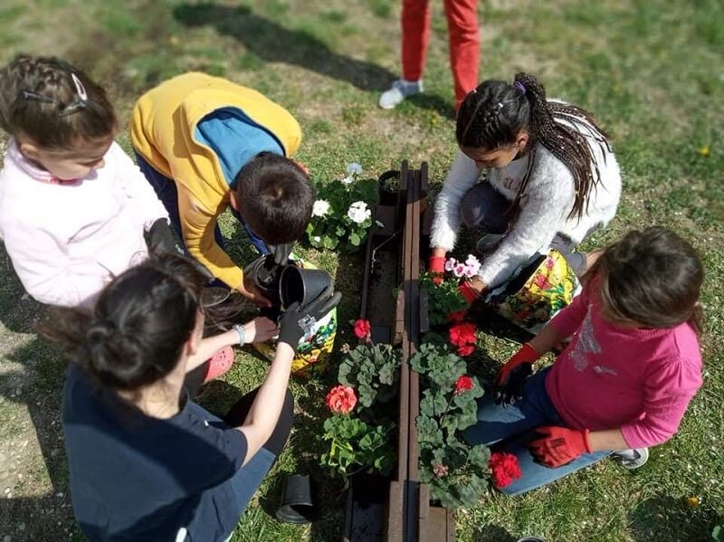 Ültettünk is. Muskátlit, babot, borsót, hagymát és retket.