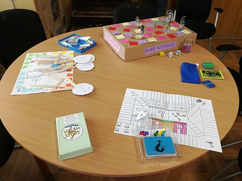 Tavaszi táborban hoztunk először társasokat. Volt csomó, amit mi készítettünk. Például a Nincs kegyelmet.