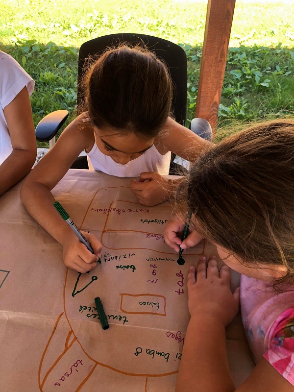 Ezután tartottunk egy reflexiós kört. Ez egy olyan terület, amivel mindig nagyon sokat foglalkozunk, de még mindig van hova fejlődni. Bedobáltuk egy mosógépbe azokat a dolgokat, amiket szerettünk nyáron, amiket szeretünk a tanodában, de azért lehetne rajtuk javítani, ugyanakkor pár nemszeretemség kukába is került, hogy aztán jól megtömjük jóságokkal a hátizsákunk. Volt, akinek könnyen jöttek a válaszok, volt akivel megszenvedtünk, volt akivel nem is jutottunk dűlőre. Ilyen ez.