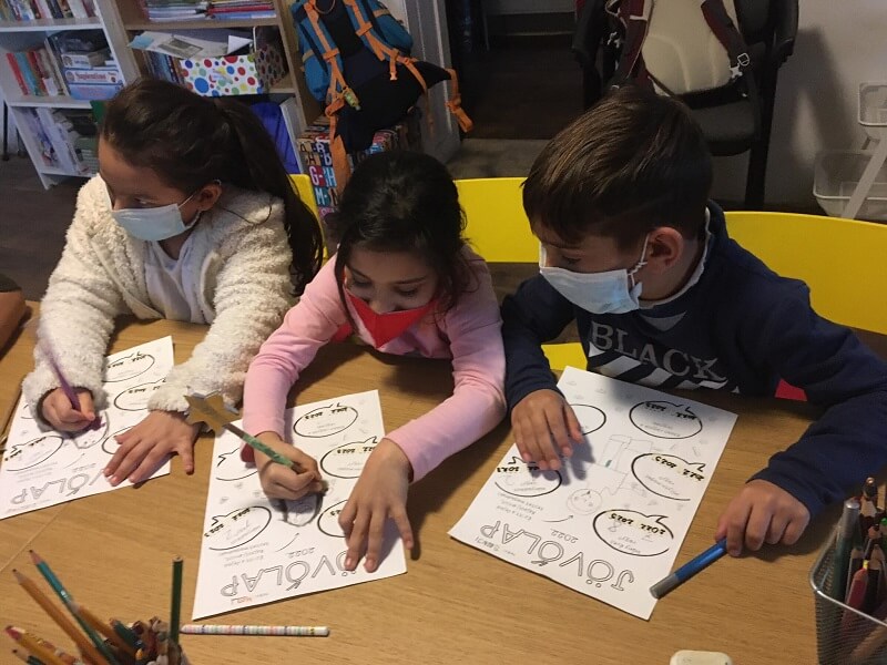 A 2021 lezárás után jött kicsit a jövőbe tekintés. Idén szeretnénk egy nagy közös naptárat csinálni, ahol minden tanulás elején lehet jelölni a dátumot, évszakot, időjárást, hőmérsékletet, de a saját kedvünket is. Így azzal kezdtünk, hogy minden csapattal megcsináltuk a naptár egy részét. Egy csapattal az évszakokat színeztük ki, egy másikkal időjáráshoz kapcsolódó kártyákat. Voltak olyanok, akikkel a hét napjait vagy a hónapokat csináltuk meg és természetesen mindenkiről fotót csináltunk a kedv jelölőhöz (már akinél nem felejtettük el, be kell valljuk, ebben nem voltunk jók). Még egy dolog hiányzott a jövőhöz, mégpedig, hogy magunkat is képzeljük el a jövőben picit. Hány évesek vagyunk most és leszünk idén, melyik osztályba járunk és fogunk járni, mennyit fogunk nőni, mi a kedvencünk most, mi az, amiben jók vagyunk most és jobban leszünk még.