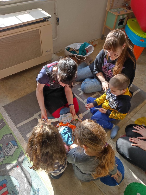 Az egyéni részekben is ezen a vonalon haladtunk tovább, sokat használtuk az évek alatt felgyűlt saját eszközeinket, de dobókockát és különböző építőelemeket (Duplo, papírtégla, Math cubes, gyurma) is. Nagyon szerettük Pakkli sepregetőjét, illetve egy új szerzeményünket a Programino-t. A könyveink közül megint egy Julia Donaldson illett a témánkhoz, mégpedig a Mackó levelei, de Kirsteen Robson Hová bújt! Keresd meg! sálas pingvinjei is jól jöttek, amikor sarkvidéki állatokról volt szó. Minden alkalmon végén újra összegyűltünk közösen és lezárásként egy-egy kézműves tevékenység is előkerült.