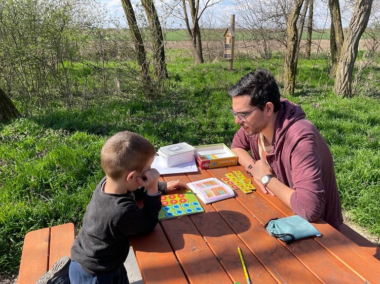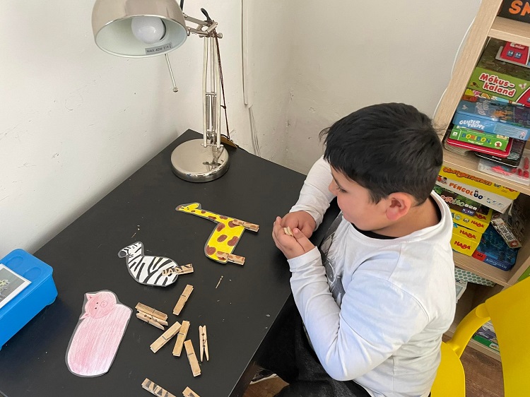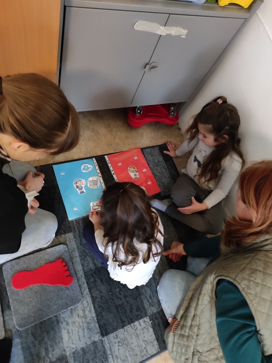 A közös rész után ment mindenki a maga feladatára, ahol olyan területek voltak fókuszban, amiket egy adott gyereknél fejlesztendőnek gondolunk. Előkerültek a BambinoLÜK (Telelő) és Logico (Évszakok) füzeteink, Magnéti’Book – Négy évszak játék, ami ilyenkor mindig jól jön, de rengeteg saját készítésű eszköz, gyurma és társas (Pengoloo) is fontos szerepet játszott.