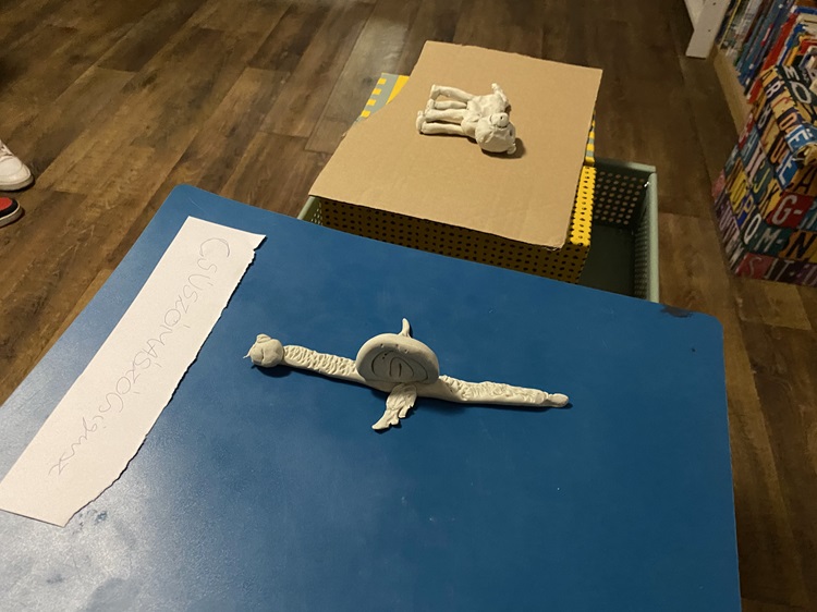 A következő alkalmon rekordot döntöttünk vitaklubos létszámban, így nyolc fővel már tényleg megvalósítottuk a korábbi ötletünket. Egy Ki vagyok én? kitalálós kör után állatos szoborjátékkal hangolódtunk: többen összeállva elefántokká, zsiráfokká, bálnákká változtunk néhány másodpercig. Szeretjük, ha alkotás közben lehet gondolkozni, így nekünk találták ki a Gyurmás játékot, amiben két csapatban, három állatból kellett összegyúrnunk egy-egy lényt, ami megmentené az emberiséget. Már ez és a külső-belső tulajdonságokkal felruházás is kellő izgalmat okozott és vitákat is szült, nem beszélve a három körös fordulóról ezután. Először mindkét csapatból egy-egy kamasz bemutatta az állatot, ezután jött egy indoklós kör, végül pedig még interjúkat is meghallgattunk a lények kapcsán. Az újak többsége is szuperül bekapcsolódott, többen beszédet is vállaltak, ezeket ki is emeltük a Madzagos visszajelzésnél a végén.