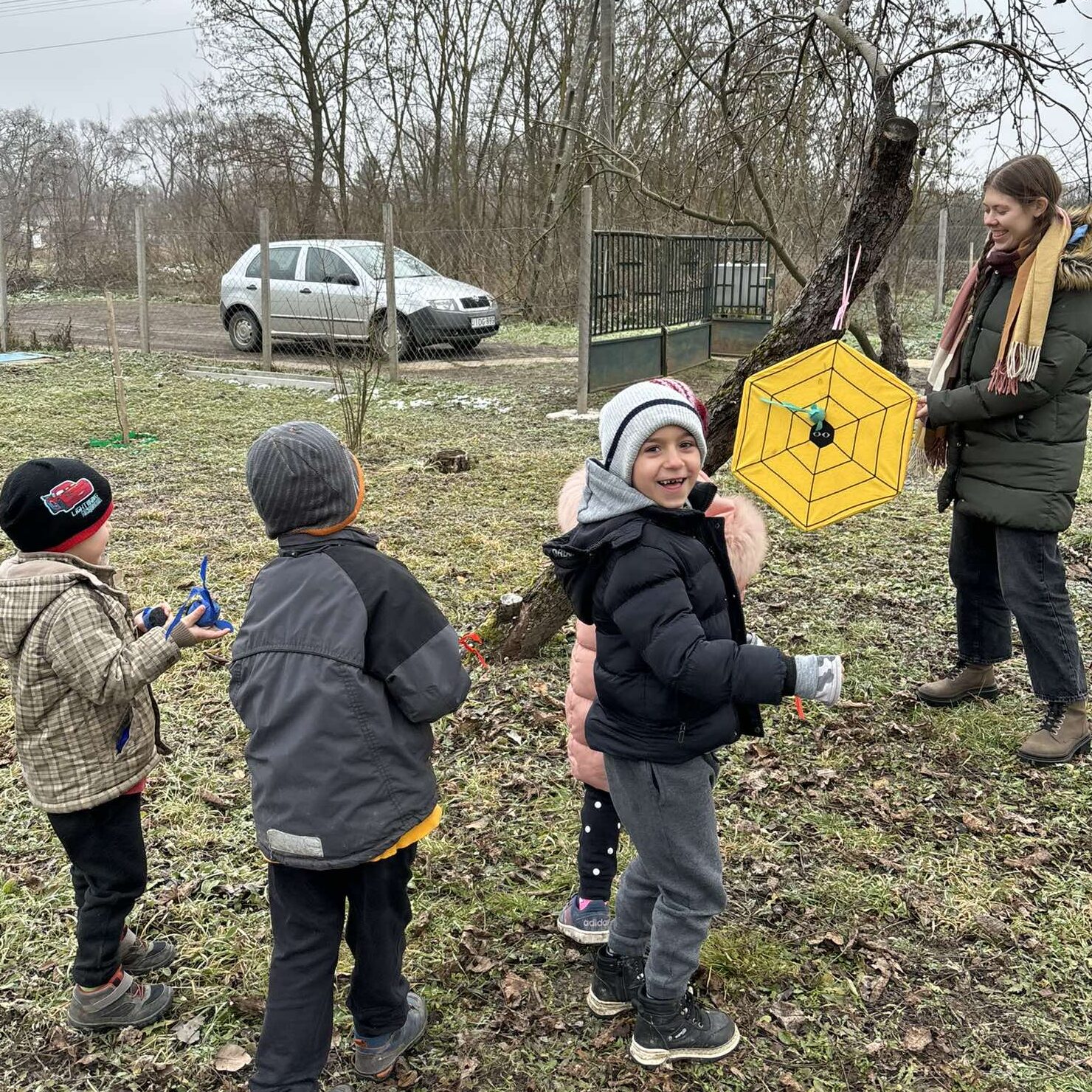 Bár itt még nem esett le a hó, már előre gyakoroltunk: dobó technikákat és hógolyózás etikettet is!
