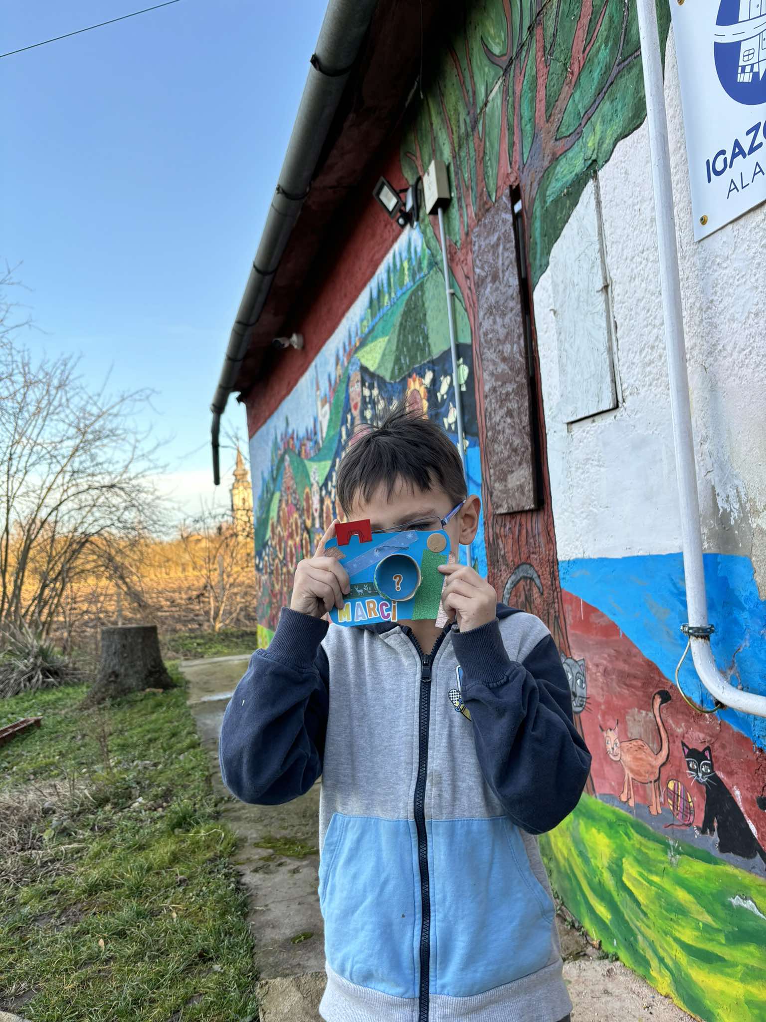 Nyakba akaszthatós karton kamerák készültek! (Már a neveik betűit is egyedül rá tudták ragasztani ezek a kis elsősök… még csak fél év telt el, te jó ég!)