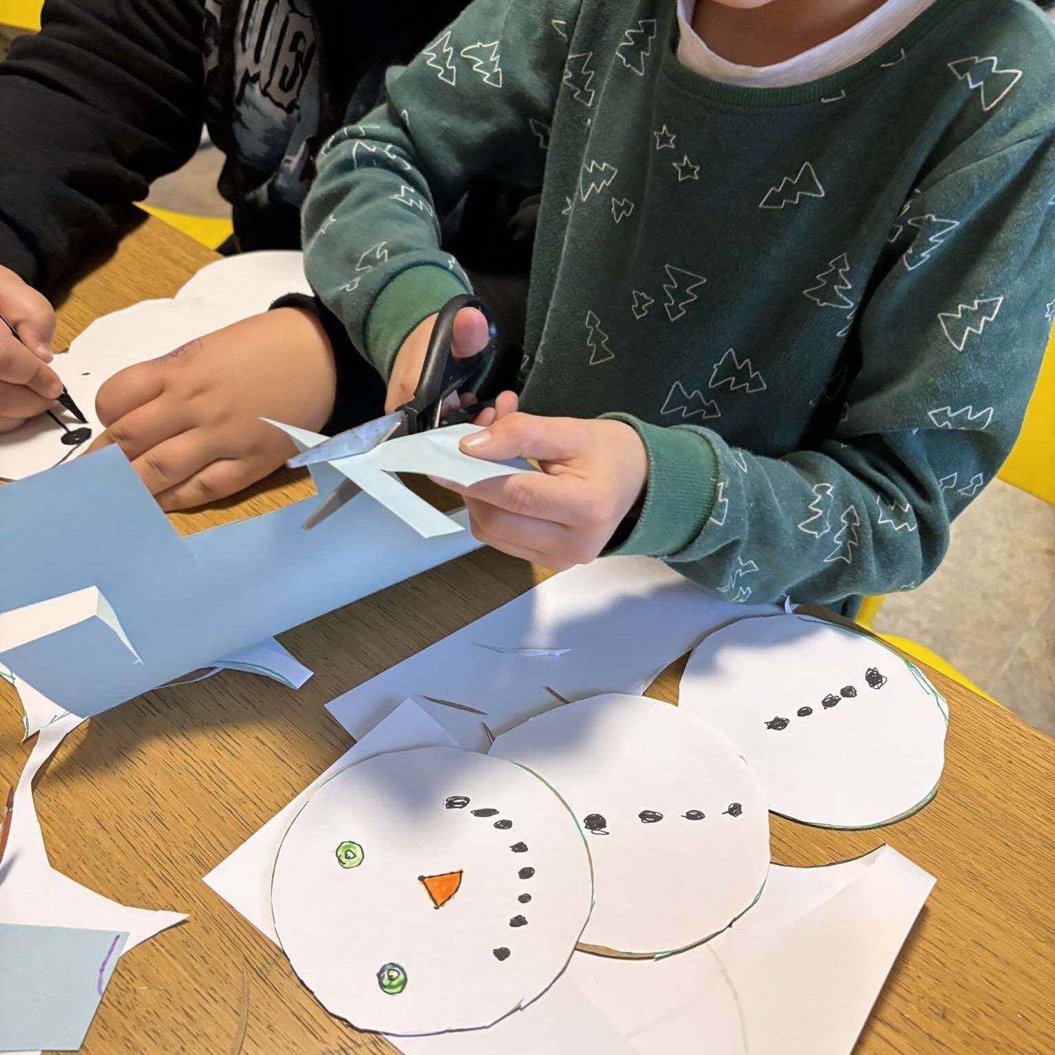 Így készültek a hóemberdíszek a tanoda ajtajára! Még napszemüveges hóember is készült, természetesen…