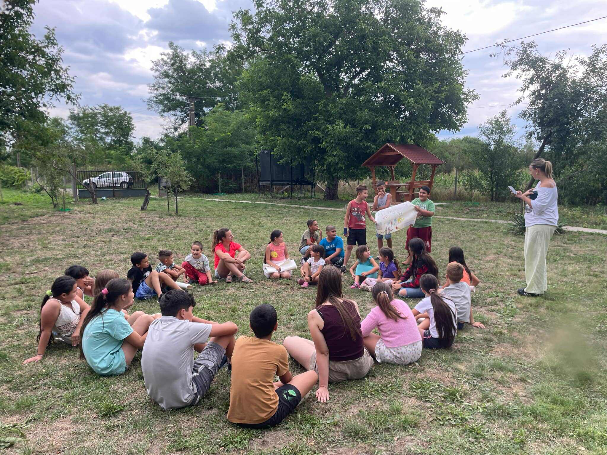 Az idei tábor témája a sport volt, ami rengeteg lehetőséget adott arra, hogy minél több gyereket bevonó, csoportos, kooperatív és páros játékokat tervezzünk. A gyerekek különösen élvezték az állomásos feladatokat: például amikor szivacsos vízipisztollyal kellett labdát célba juttatniuk, vagy amikor a „gólya viszi a fiát” játékban együttműködve, egymásra figyelve kerülték meg a diófát. Nagy sikert aratott az is, amikor sorba állva, hátrafelé öntötték a vizet kis vödrükből a mögöttük álló vödörbe – ezt sok nevetés és biztatás kísérte. A sportos Kahoot-kvíz is komoly izgalmakat hozott, a gyerekek lelkesen vettek részt benne.